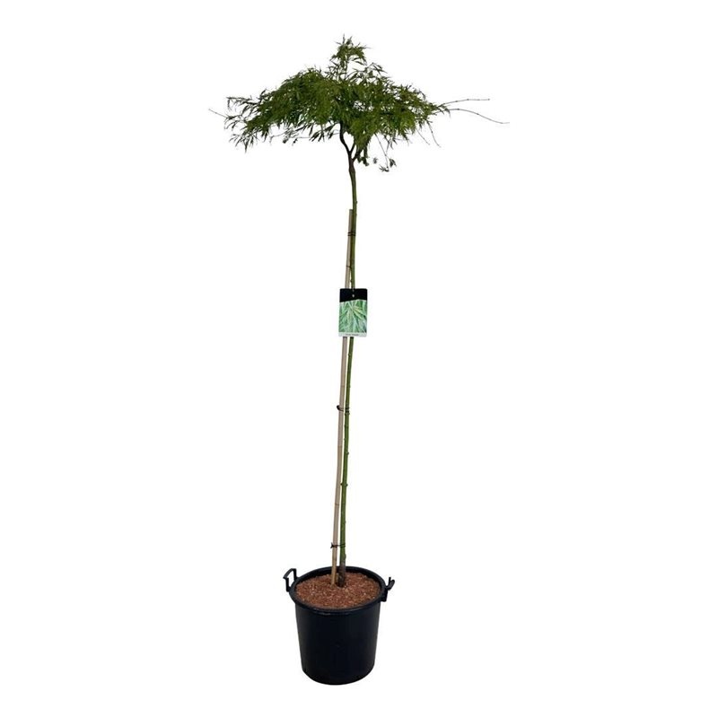 Deze esdoorn heeft opvallende, diep ingesneden bladeren die een delicate, bijna verwaaide uitstraling geven. De bladeren zijn meestal groen in de zomer, maar kunnen in de herfst een prachtig palet van rood, oranje en geel vertonen. De boom blijft relatief klein en wordt vaak gebruikt als sierboom of als aanplant voor in een pot. De takken groeien in een cascadevorm, wat de boom een weelderig, waaiervormig uiterlijk geeft.