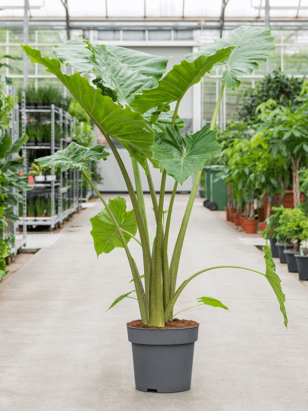 De Alocasia Portodora, ook wel bekend als de Olifantsoor, is een plant die direct de aandacht trekt met haar enorme, golvende bladeren en statige uitstraling. Met een hoogte van circa 160 cm en een breedte van 110 cm is deze Alocasia een ware blikvanger die elke ruimte een exotisch karakter geeft. Haar grote, glanzend groene bladeren waaieren sierlijk uit, waardoor ze een weelderig en architecturaal accent vormt in elk interieur.