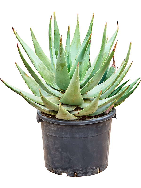 De Aloe Comptonii is een prachtige, robuuste vetplant die direct de aandacht trekt met haar brede, vlezig groene bladeren en krachtige groeiwijze. Met een hoogte van circa 70 cm en een breedte van 65 cm vormt deze aloë een indrukwekkende en natuurlijke eyecatcher in huis of op het terras. De bladeren groeien in een compacte rozetvorm en krijgen met de jaren een licht grijsgroene tint, wat haar een subtiel stoer en rustgevend uiterlijk geeft.