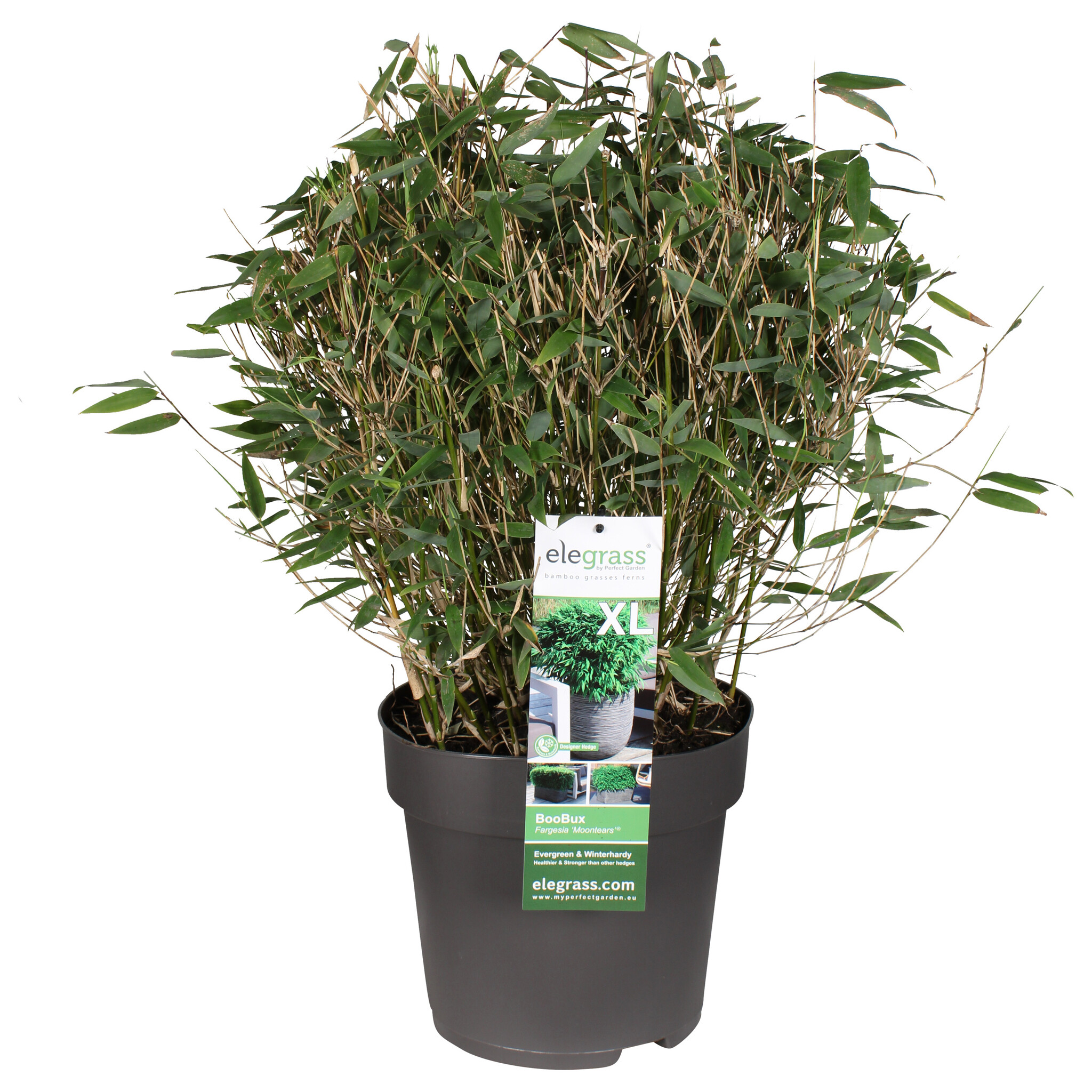 De Bamboe ‘Moontears’ is een sierlijke en moderne plant die rust en elegantie uitstraalt. Met een hoogte van ongeveer 70 cm en haar dichte, frisgroene blad vormt ze een prachtige blikvanger in huis, op het terras of balkon. Deze compacte bamboesoort heeft een verfijnde groeiwijze en een kalme uitstraling, waardoor ze perfect past in een minimalistisch, natuurlijk of Japans geïnspireerd interieur.