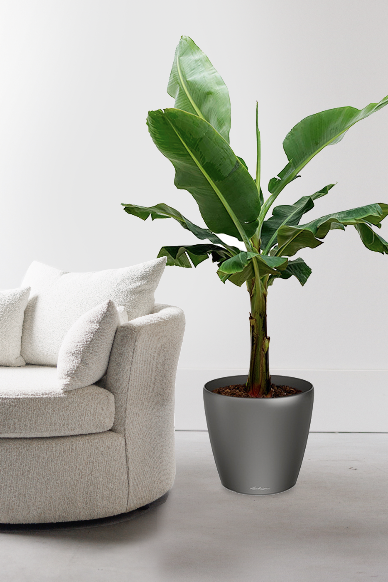 Deze tropische kamerplant komt van oorsprong uit Azië. De Bananenplant, ook wel Musa genoemd, is een plant die perfect bij een urban jungle past. De Bananenplant is een snelle groeier, en regelmatig zie je ook nieuwe plantjes in de pot ontstaan. Deze kunt u leuk overzetten naar een eigen potje en deze laten groeien.