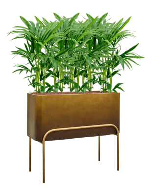 Onze basis opmaak bestaat uit semi hydro, dat betekent dat wij vanaf een potmaat van 20 centimeter en groter, de planten rondom de kwekersaarde afstrooien met hydrokorrels. Hierbij heeft u als extra keuze om een watermeter toe te voegen en of u de bovenkant van de pot wilt laten afstrooien met houtsnippers.