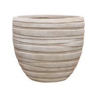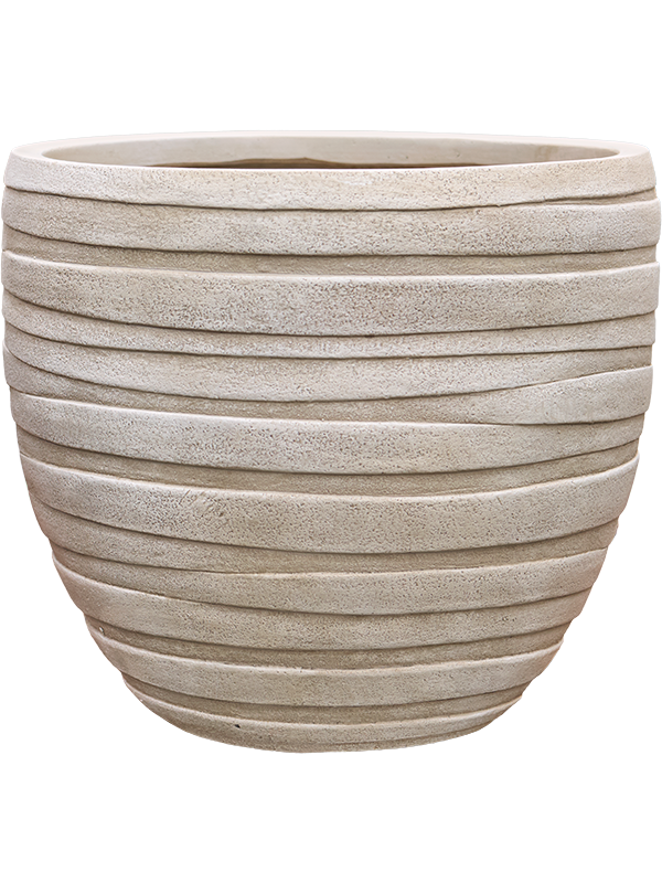 De Baq plantenbak uit de Tornado-collectie heeft een karakteristieke golvende oppervlaktestructuur en een geribbelde afwerking. Deze plantenbak is vervaardigd uit Fiberclay, een mengsel van glasvezel en klei. Hierdoor bezit de plantenbak een natuurlijke steenachtige uitstraling, terwijl het materiaal aanzienlijk lichter in gewicht is.