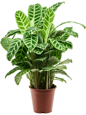 De Calathea staat bekent om zijn bijzondere gestreepte en gekleurde bladeren. De mooie tekeningen op het blad zorgen voor een bijzondere en opvallende look. Houdt u van iets bijzonders in huis, dan is de Calathea een goede keus. Naast dat deze plant mooi in ieder interieur past, is deze ook nog eens luchtzuiverend. Kijk ook zeker niet raar op als de plant richting de avond een andere houding aanneemt. De bladeren sluiten zich namelijk richting de avond toe.