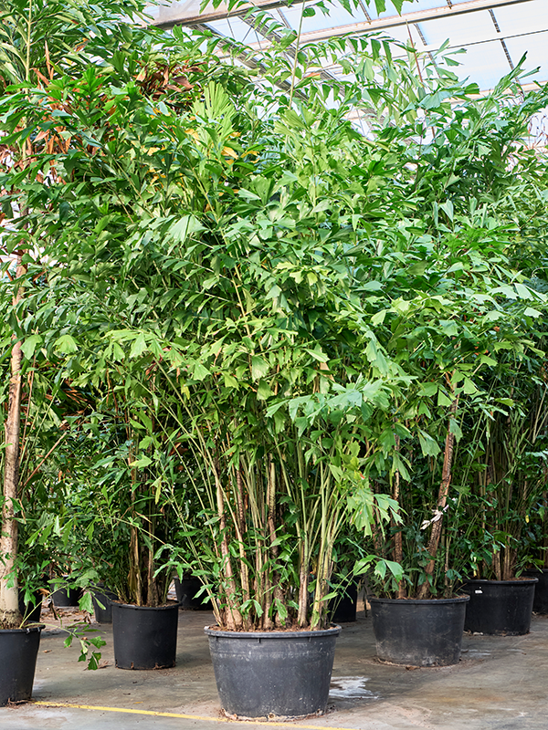 De Caryota Mitis, beter bekend als de Vissenstaartpalm, is een spectaculaire blikvanger met een unieke, weelderige uitstraling. Met een hoogte van maar liefst 6,5 meter en een brede, sierlijke kroon van diep groene bladeren vormt deze palm een imposant statement in elke ruimte of tropische tuin. Haar bijzondere, driehoekige bladstructuur – die doet denken aan een vissenstaart – geeft haar een elegante en exotische flair.