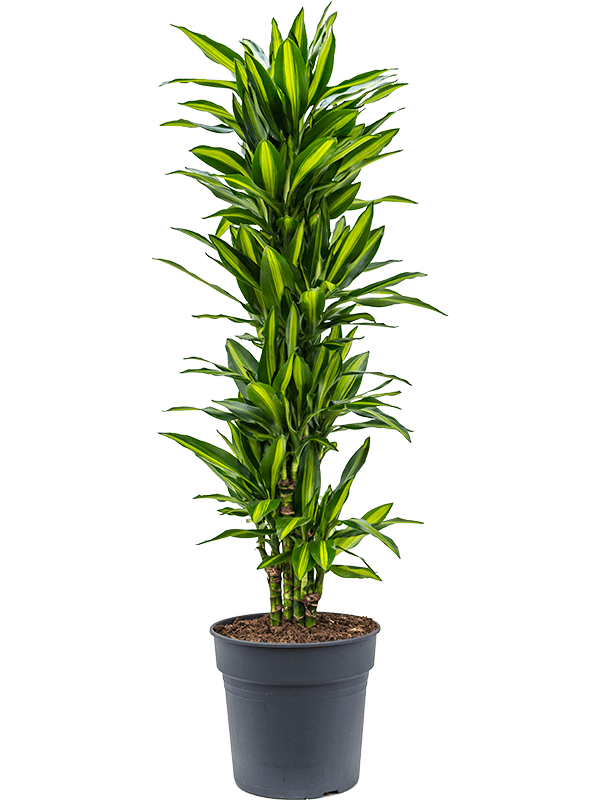 De verzorging van de Dracaena is eenvoudig. Geef haar regelmatig, maar met mate water – de grond mag licht vochtig blijven, maar vermijd natte voeten. In de groeiperiode kun je haar af en toe wat plantenvoeding geven om de groei te stimuleren. Verpotten is slechts om de paar jaar nodig, wanneer de wortels de pot beginnen te vullen.