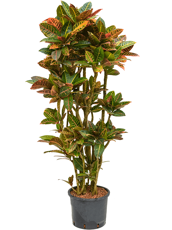 De Croton kan zowel op een lichte als een zonnige plek staan en heeft pas water nodig als de grond bijna droog aanvoelt. Geef de plant 1x per 2 weken extra voeding, maar niet in de winter. De Croton is giftig voor mens en dier.