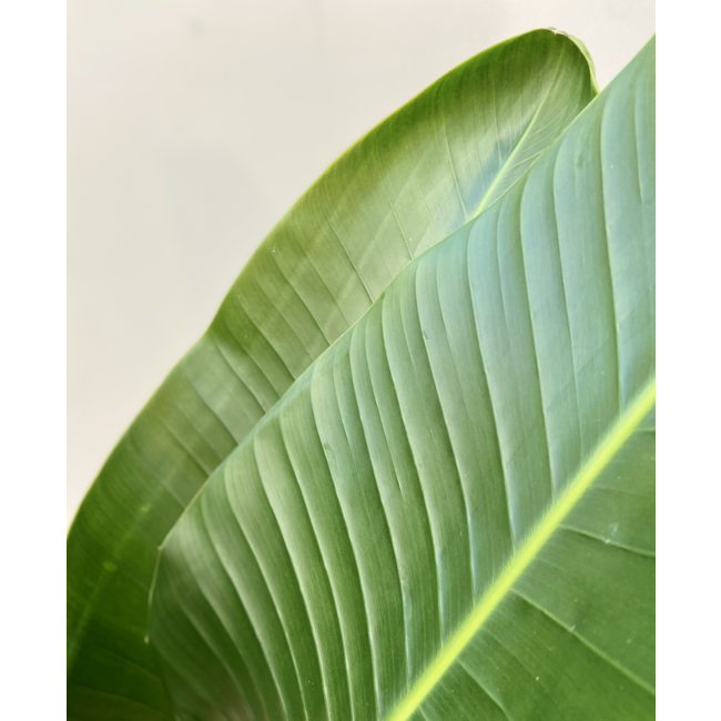 De Strelitzia is een plant met prachtige, grote, groene bladeren die zijn oorsprong vindt in Zuid-Afrika. De grote veerachtige bladeren zorgen voor uw eigen jungle in huis. In de natuur kan de Strelitzia wel 10 meter hoog worden! In uw huiskamer zullen ze die hoogte niet bereiken, maar ze zijn wel een goede opvulling voor uw dode hoek.