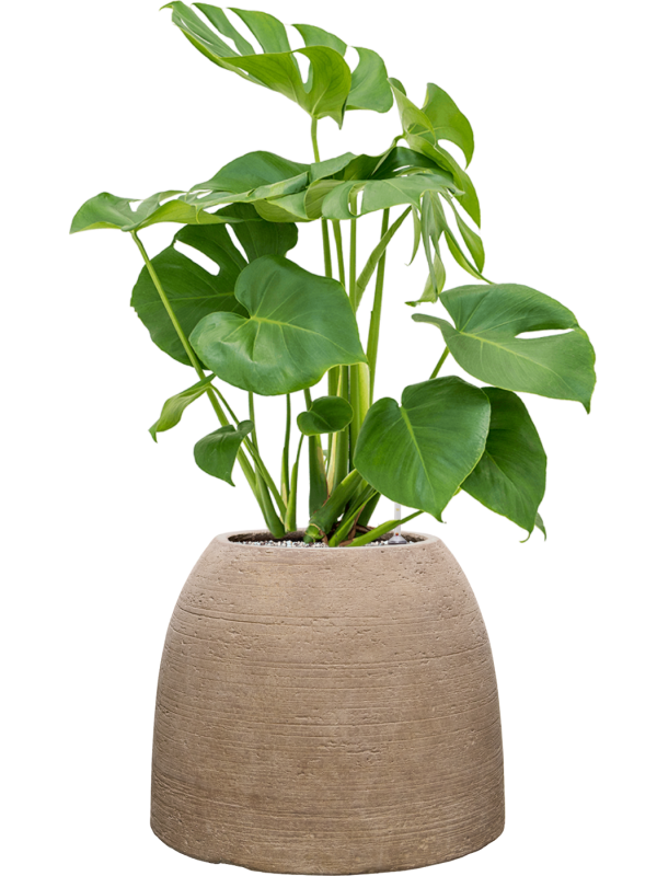 De Monstera deliciosa is een krachtige groene kamerplant met grote, glanzende bladeren die wel 30 cm breed kunnen worden. Kenmerkend voor de plant zijn de diepe insnijdingen in de bladeren, die de plant een exotische uitstraling geven. De plant kan uitgroeien tot een flinke struik of, met behulp van een mosstok, een klimplant. De Monstera deliciosa kan onder gunstige omstandigheden bloeien en produceert dan een opvallende witgroene bloem die tot 20 cm lang kan worden.