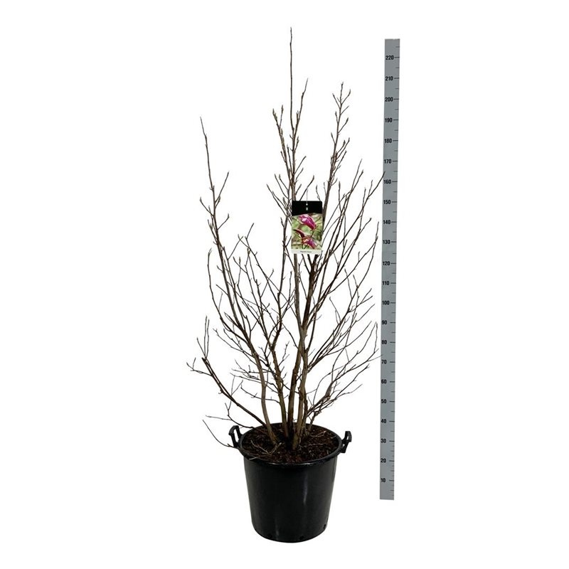 Magnolia ‘Susan’ is een kleine, bladverliezende struik die een hoogte van ongeveer 2 tot 3 meter bereikt. In het voorjaar bloeit hij met opvallende, tulpvormige bloemen die een diepe paars-roze kleur hebben. De bloemen verschijnen vaak voordat het blad zich ontwikkelt, wat zorgt voor een spectaculaire bloei. De bladeren zijn groen en ovaalvormig, en in de herfst kleuren ze geel.