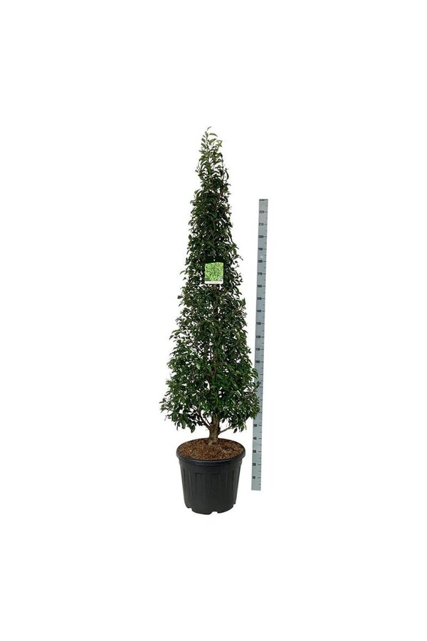 De Portugese laurier Prunus Angustifolia is een sterke en stijlvolle buitenplant die direct zorgt voor hoogte, rust en een verzorgde uitstraling in de tuin. Met een hoogte van circa 240 cm heeft deze plant een indrukwekkend en volwassen formaat, ideaal voor wie snel privacy en structuur wil creëren. Het smalle, donkergroene blad oogt luxe en verfijnd en blijft het hele jaar door aan de plant. Hierdoor vormt deze Portugese laurier een blijvend groen element dat perfect past in zowel moderne als klassieke tuinen.