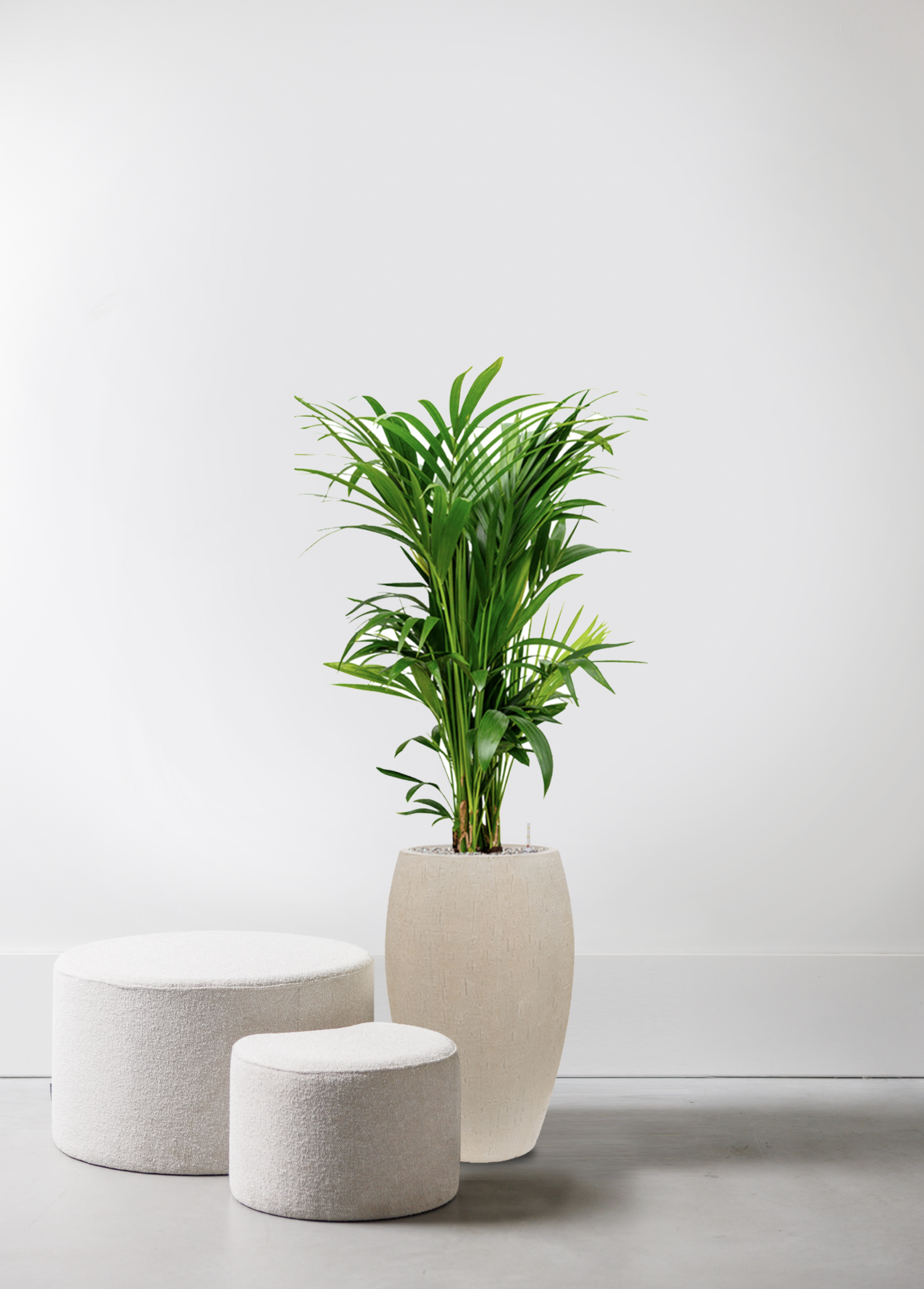 De Kentia palm is een luchtzuiverende plant en zet bepaalde fijn stoffen om in schone zuurstof. De palm is sterk en makkelijk in onderhoud en niet giftig voor huisdieren.