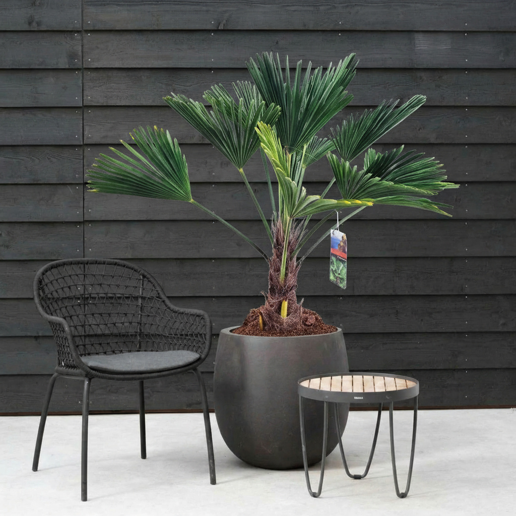 De Trachycarpus wagnerianus vindt zijn oorsprong in Spanje en is een ideale keuze voor een plek met indirect licht. Plaats hem bijvoorbeeld in een hoek van uw woonkamer of bij een raam met gefilterd licht voor een prachtig effect. Met zijn tropische uitstraling en gemakkelijke verzorging voegt deze palm niet alleen leven toe aan uw interieur, maar ook een vleugje elegantie.